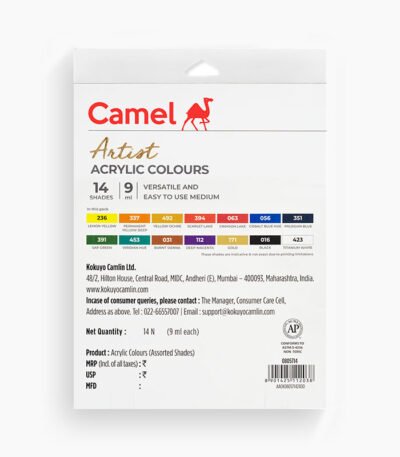 Camel Artist Acrylic Colours Assorted pack of 14 shades in 9 ml