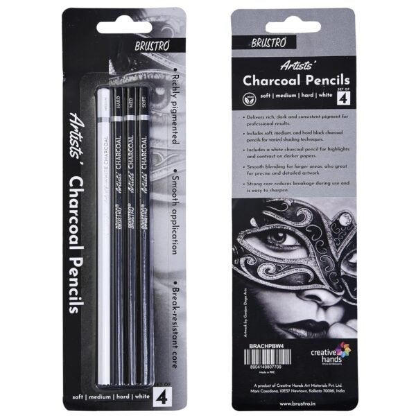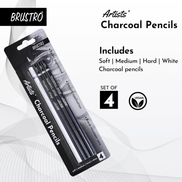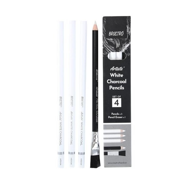 BRUSTRO Artists White Charcoal Pencil Set | 5mm, Set of 3 + 1 Pencil Eraser