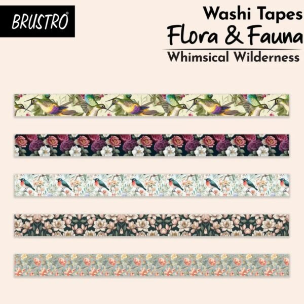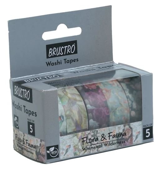 BRUSTRO Craft Paper Delights Washi Tapes (15mm x 5m), Pack of 5 | Low Tack Adhesive