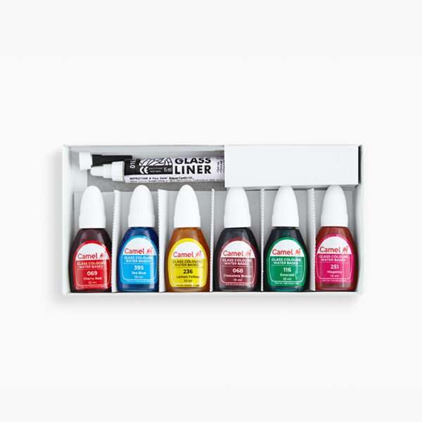 Camel Glass Colours Assorted pack of 6 shades in 10 ml with Liner, Water based