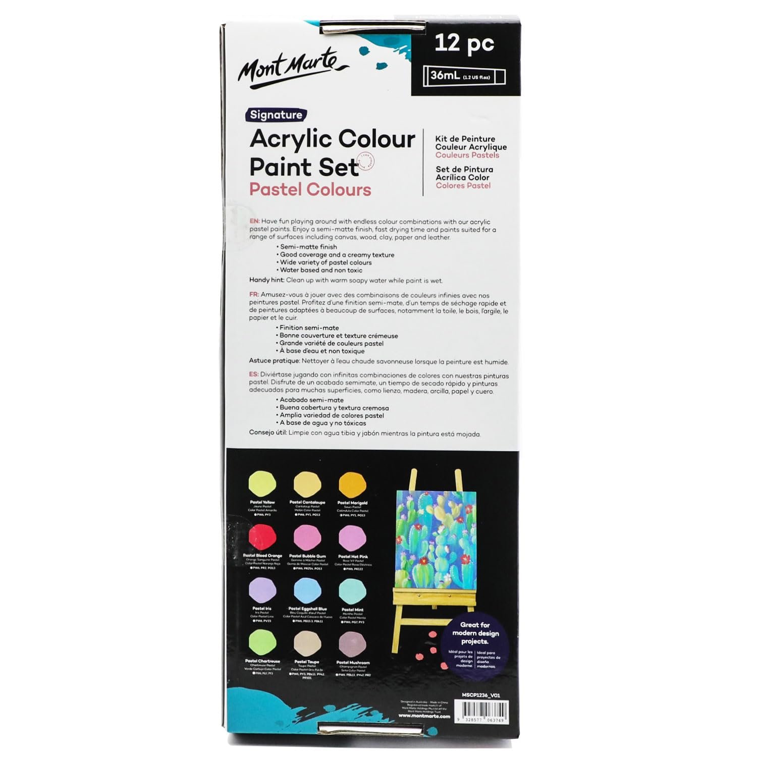 The set includes 12 creamy, pastel colours that offer up a great palette for modern design projects. These acrylic paints feature a smooth, creamy texture and good coverage that dries to a semi-matte finish. Plus, they’re fast-drying so you can layer paint without muddying colours, making it ideal for a classroom setting. These versatile art paints work on most surfaces including canvas, cardboard, leather and more. Pick up this dreamy pastel paint set and get started on your next art or craft project.