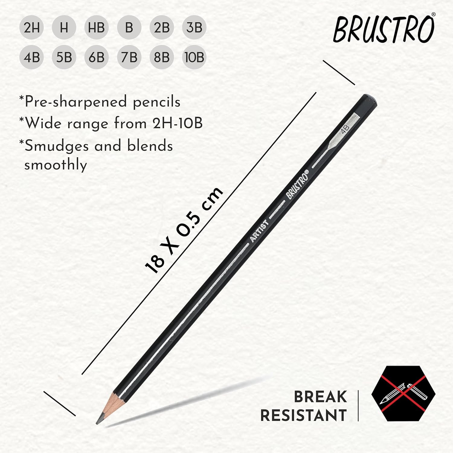 • Package contains 5 pre-sharpened graphite pencils of different degrees.2B, 4B, 6B, 8B, 10B.