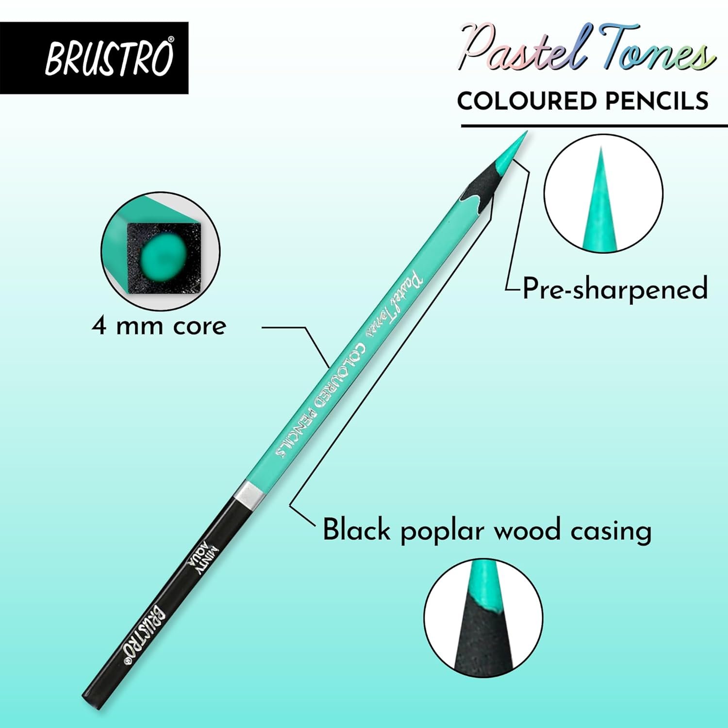 - Brustro Set of 36 Pastel Tone Colour Pencils is a sophisticated collection of muted tones colour pencils, housed in a premium tin box packaging that adds a touch of elegance. These exquisite colour pencils are encased in a special black poplar wood, elevating the aesthetic appeal and ensuring durability.