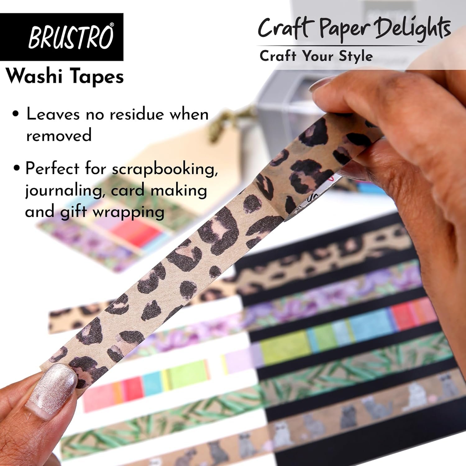 Elevate your crafts with Brustro’s Craft Paper Delights Washi Tape. These eco – friendly masking tapes features a range of classic designs and are perfect for adding an elegant touch to any project. With sizes of 15mm× 5 m, these tapes have recyclable materials and an easy-to-tear design, they offer both style and convenience. Ideal for scrapbooking, journaling, gift wrapping, or home décor, these versatile tapes make every creative idea come to life while being environmentally responsible. The low tack adhesive helps in easy repositioning and leaves no residue when removed.
