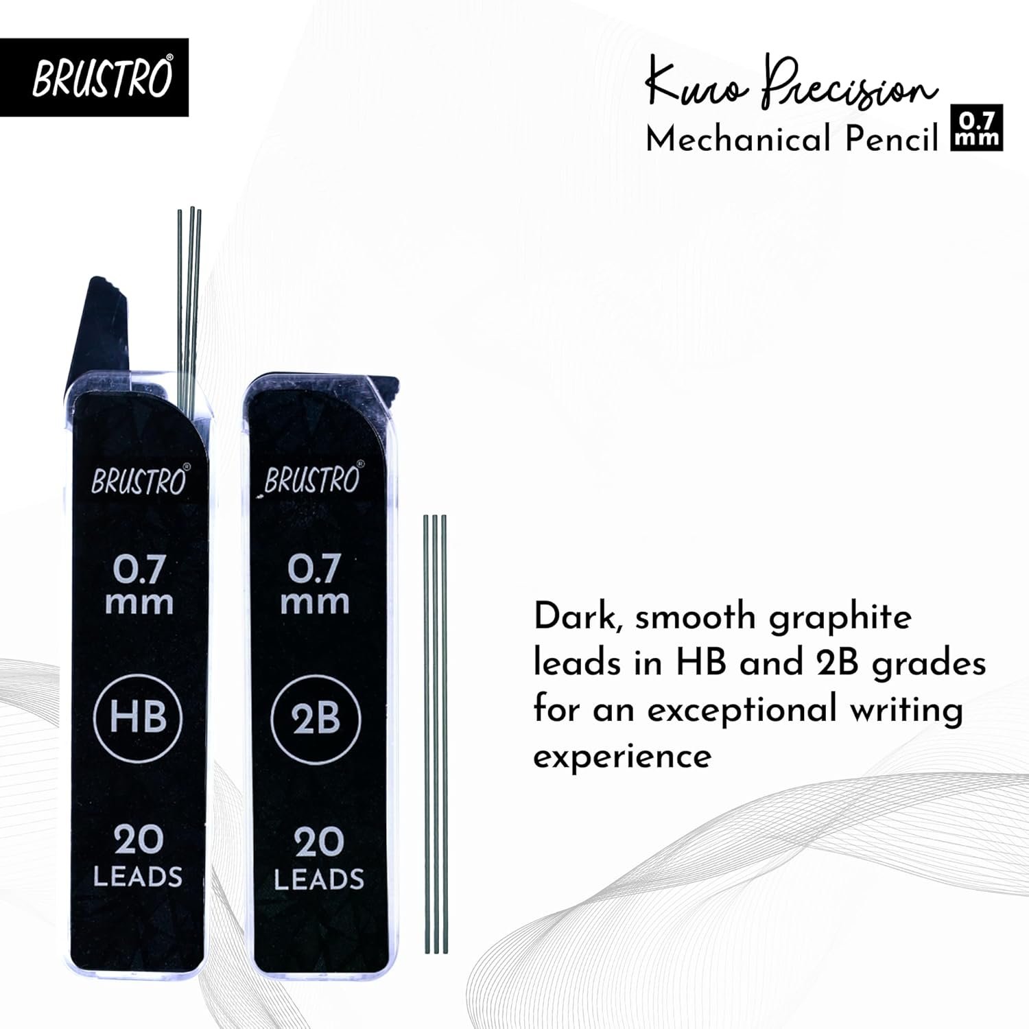 Brustro Kuro Precision Mechanical Pencil | Tip Size – 0.7mm With 20 – HB and 20 – 2B leads , 3 Eraser Refills