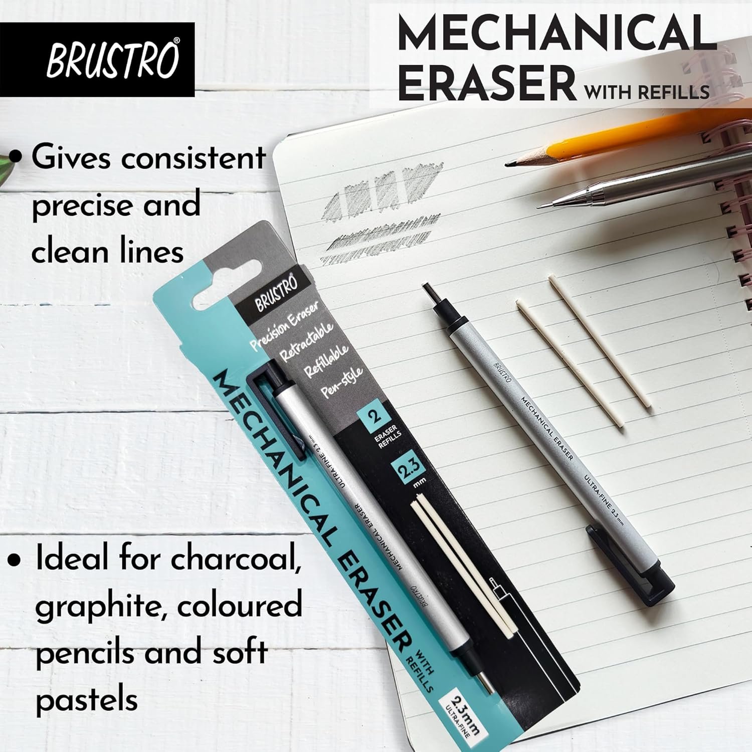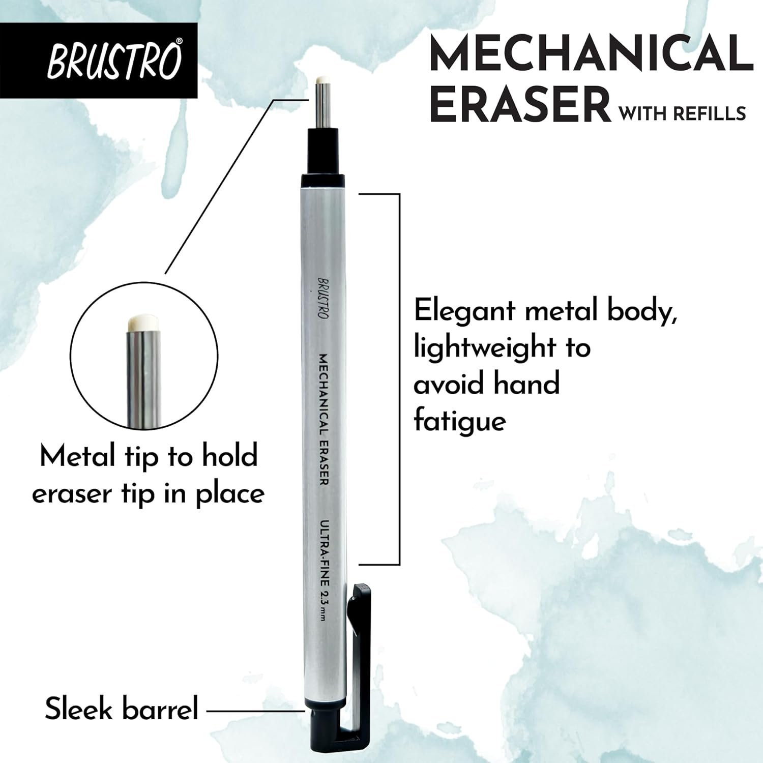 BRUSTRO Mechanical Precision Retractable Eraser | 2.3mm – Ultra-Fine Tip | Refillable