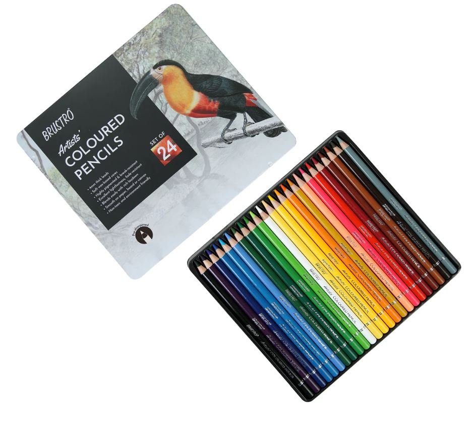 Brustro Studio Colour Pencil Set 24 in a Metal Tube| 3mm Lead,Pre-Sharpened
