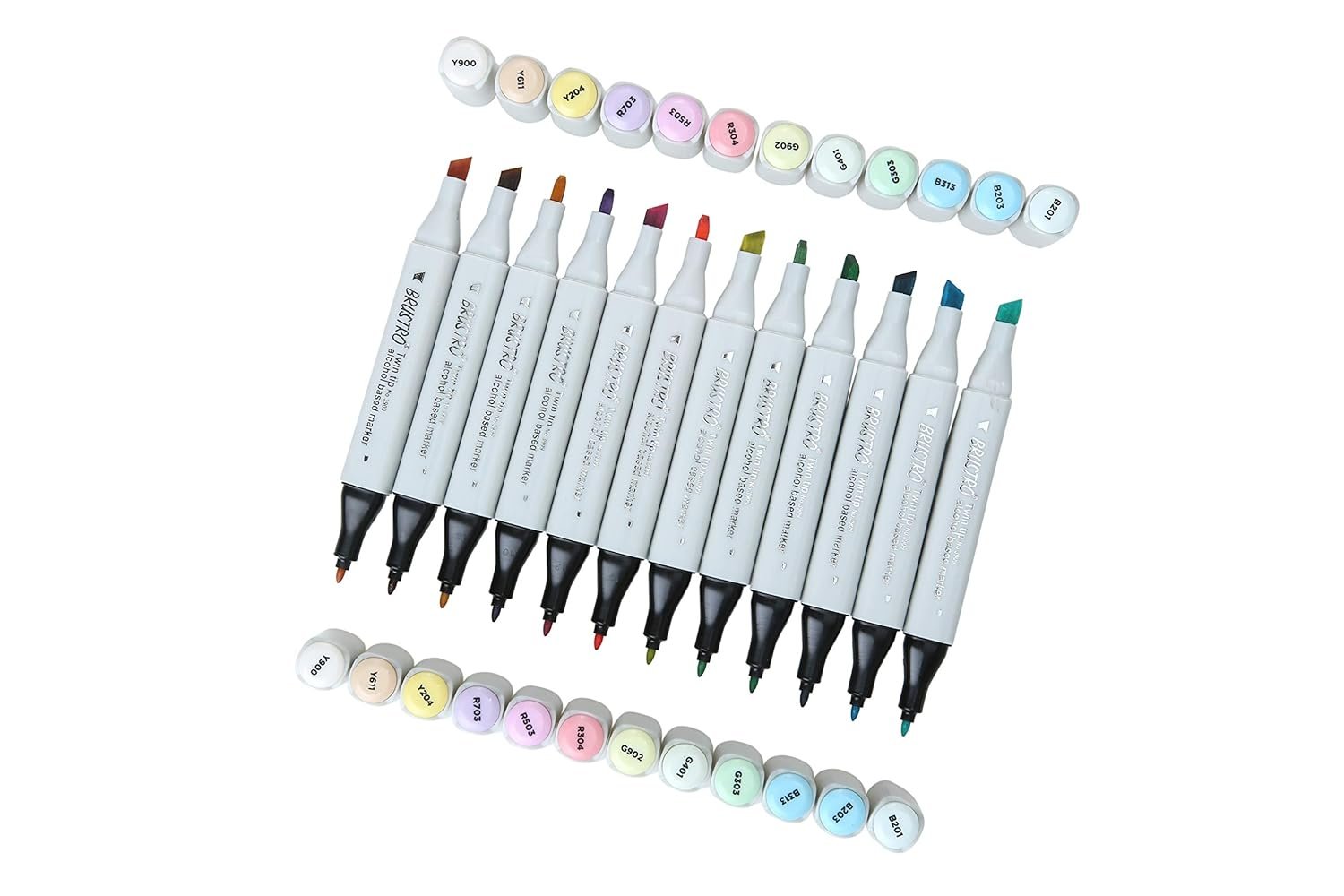 BRUSTRO Twin Tip Alcohol Based Marker Set of 12 – Pastel Tones