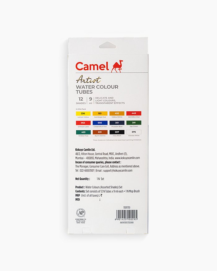 Camel Artist Water Colours Assorted pack of tubes, 12 shades in 9 ml