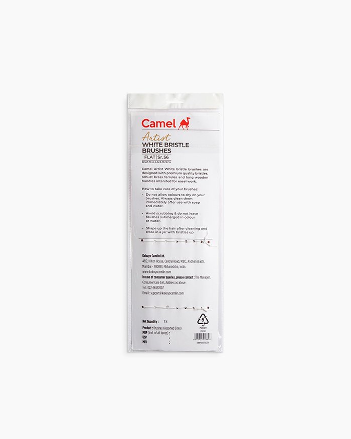 Camel White Bristle Brushes Assorted pack of 7 brushes, Flat – Series 56