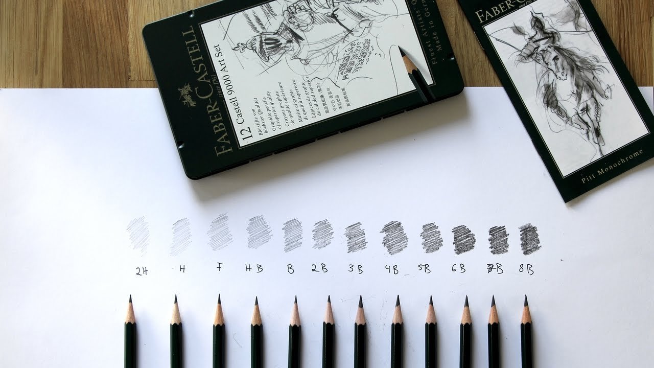 • 12 Castell 9000 set – 8B, 7B, 6B, 5B, 4B, 3B, 2B, B, HB, F, H &  2H