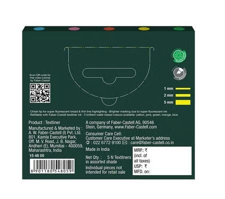 Faber Castell Text Liner classic Pens Assorted is ideal for students and professionals alike. It comes with variable specification and enhances on-trend writing style. It is a super fluorescent highlighter with longer writing length and 30 percent more ink. The brighter marking is due to the super fluorescent ink, and it is refillable with Faber-Castell text liner ink.