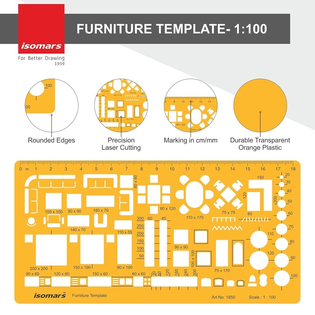 - Isomars 1:50 Architect Combination 1: 50 Scale Technical Drawing Template Stencil