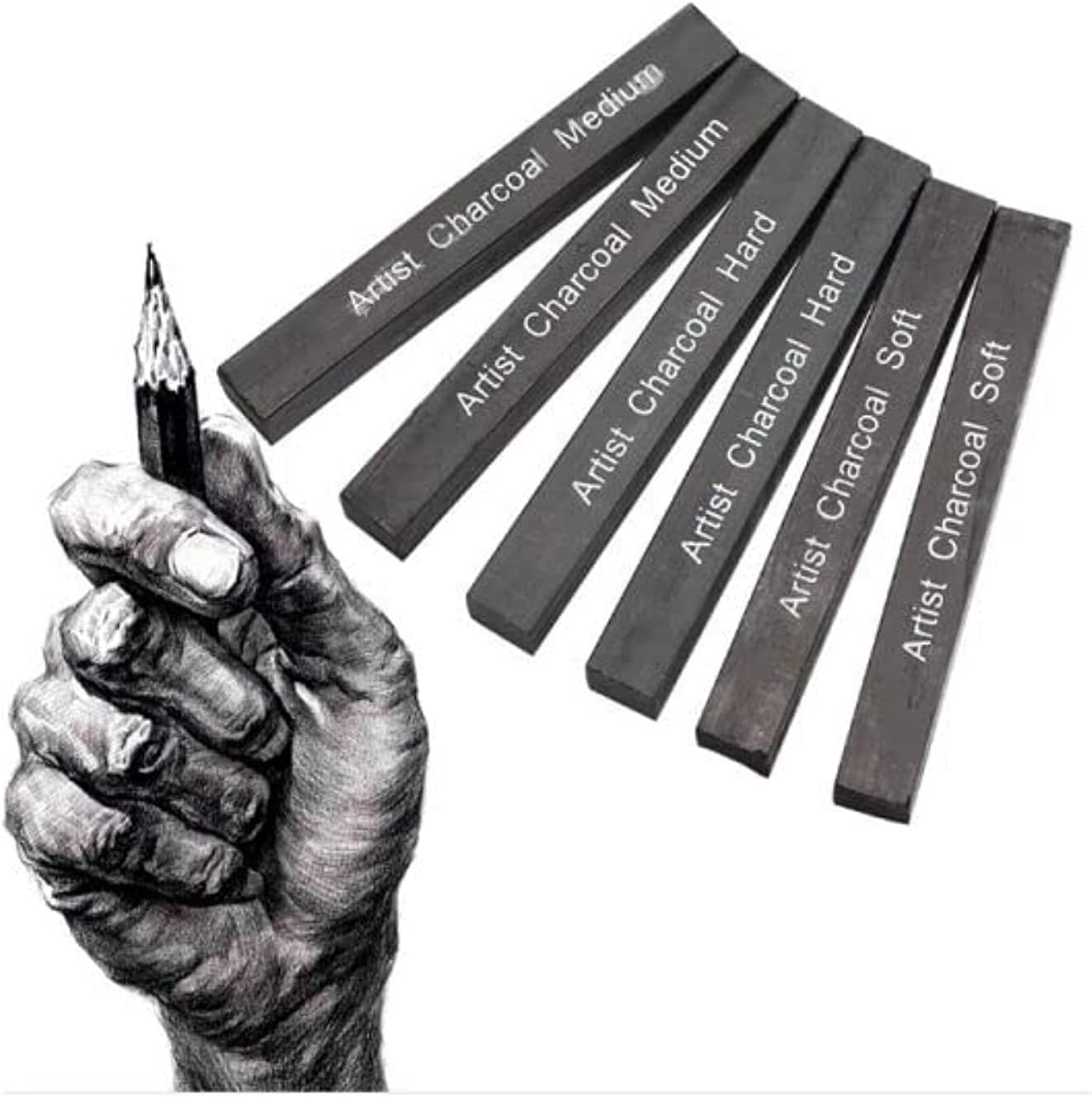 • Available in soft, medium and hard densities: Create a rich, black stroke that is smooth and uniform in depth. Available in soft, medium and hard densities for creating a full range of tones. Flat edges can be used for broad strokes or sticks can be sanded to a fine point for detailed work.
