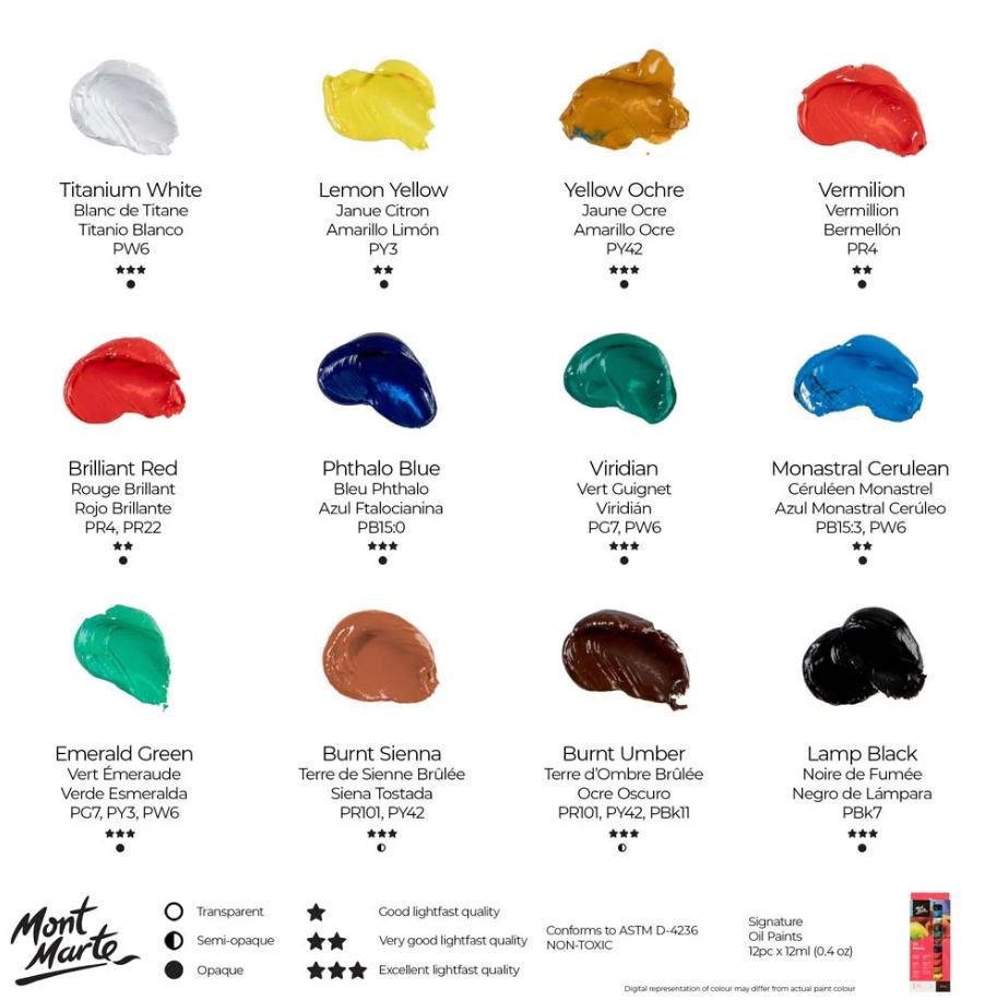 Mont Marte Oil Paints Signature 12pc x 12ml (0.4 US fl.oz)